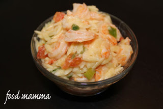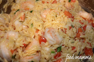 Cook the shrimp in oil until almost cooked through. Add the garlic, onions, tomatoes, and lemon zest and stir. Add in the lemon juice, butter and panko and stir until mixture becomes thick. Add orzo and stir until combined.