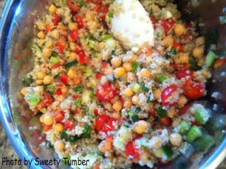 It’s a snow day today and I was feeling hungry. Too lazy to run out in the blistering weather to purchase some groceries, I decided to test my culinary skills and come up with something to eat with existing ingredients in my pantry. For months now, I had been intentionally ignoring the jar of quinoa that I purchased on one of my ‘today is the day that I will eat healthy and instantly lose a million pounds’ type outings. So I thought… Maybe I should learn how to prepare this, how bad could it taste? I’ll just jazz it up with some fresh veggies and lemon. On a side note, up until today I really had no idea what quinoa even was! Well, after some snooping around in my fridge and throwing some simple veggies together, I enjoyed the most healthiest, tastiest and filling salad ever! Quinoa is an amazing grain full of fiber and all nine amino acids. It’s also a complete protein making this an excellent choice for those who are trying to lower their weekly meat intake. It’s also gluten free. I hope you enjoy this as much as I did. My 2 year old sure did.