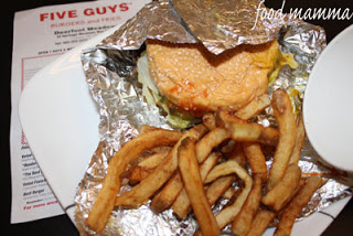 I had been hearing about Five Guys Burgers for a while now. People raved about how great these made-to-order burgers were, how big they were and all the toppings they had. I just had to go try it for myself. I stopped in a couple weeks ago and picked up some burgers to take home for dinner. I had expected a line but was happy to learn that I just missed the rush. Five Guys is located in Deerfoot Meadows, just across from Fat Burger.