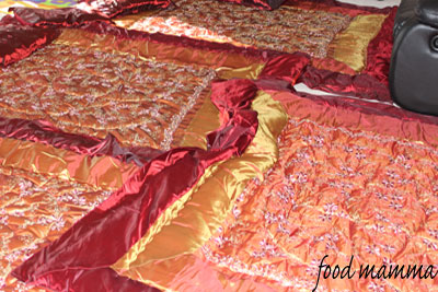 Our friends obliged with costumes dressing as gypsies, Arabian princesses and sheiks. Red and gold duvets (thanks to my MIL) covered the floors along with pillows galore.