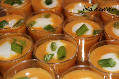 Refreshing shot glasses of chilled carrot and cauliflower soup were topped with a dollop of yogurt and were a hit with even the kidlets.