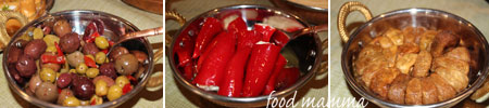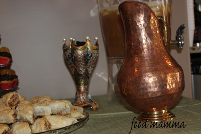 Food was plentiful, inspired by Middle Eastern and Moroccan specialties. Little copper bowls were filled with olives, figs and sweet peppers stuffed with feta.