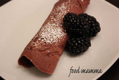 Ever since I attempted Red Velvet cupcakes last June, it has become a favourite of mine. Always looking to combine a couple of my favourite things, I mixed up a crepe recipe with red velvet and the combination was delicious. My 3 year old, Qais, who is always happy to help in the kitchen enjoyed stirring the batter and of course, taste-testing! I added Chocolate spread to the filling because one can never get enough chocolate.
