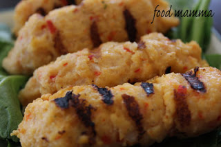Mix together shrimp with all the ingredients. Shape into kebabs using the end of a wooden spoon. Place on a grill until the shrimp are cooked.