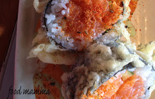 Because all I really wanted was salmon, we ordered 3 rolls packed with it. The first was the Tempura Spicy Salmon Roll. I loved this roll, in fact, I think it was my favourite of the night. The salmon was so fresh and there was lots stuffed into the roll. I liked that the outside had the tempura coating, providing that perfect crunchy texture in contrast to that of the salmon. So good!