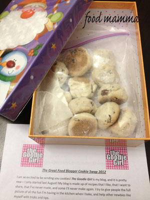 I was very excited to participate in this year’s Food Blogger Cookie Swap. In it’s second year, this swap is hosted by Love and Olive Oil and The Little Kitchen. It’s a great concept – send a dozen cookies to three fellow bloggers and three dozen will be sent to you.