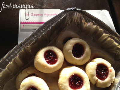 I also received a box of thumbprint cookies from the Gourmet Housewife. Another classic shortbread filled with raspberry jam, so good!