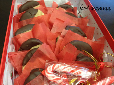I wasn’t too sure what to make so I had to do some experimentation. I finally settled on shortbread and this great recipe from Family Circle. Little disks of brown sugar shortbread with walnuts and dipped in chocolate. Easy and super delicious, I’ve made them a few times since the first trial.