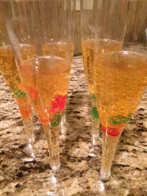 These glasses filled with sparkling apple juice and gummy bears by my friend S were a fun touch for New Year’s Eve celebrations.