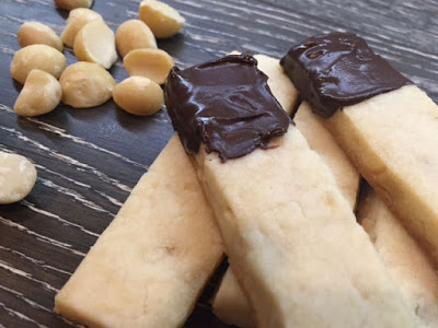 Naturally, when we were in Hawaii last week, we indulged in lots of macadamia nuts and of course, brought some home. We loved the little cookie shops filled with macadamia shortbread so it was on my list of things to make.