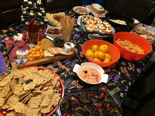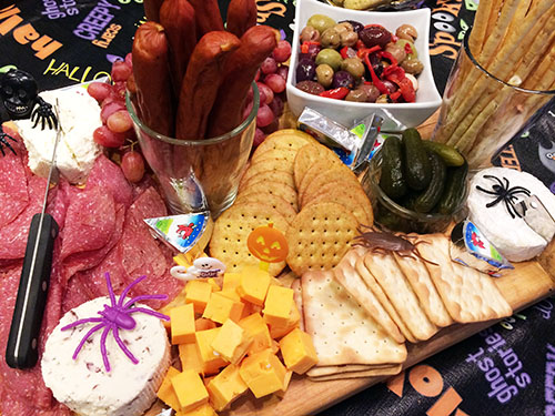 Add pumpkins, spiders and even gummy worms to spruce up your party table or charcuterie board. Have fun!