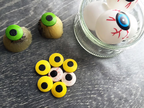 There’s something about eyeballs that make things just a little spooky. From plastic ones to candy ones, they are great to add to Halloween decor. Make your own with a melon baller using fruit such as kiwi and melons.
