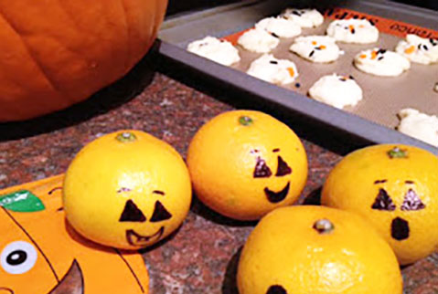 Trying to avoid candy this year? Add jack-o-lantern faces to mandarins making them a fun and healthy treat.