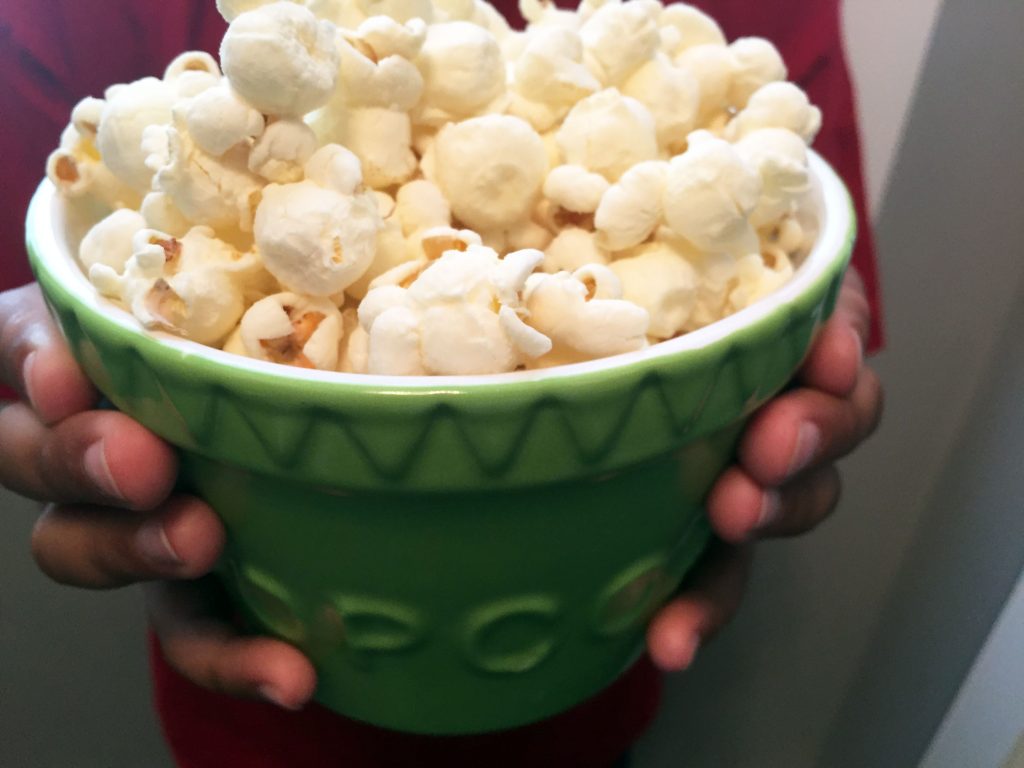 Popcorn – Popcorn is one of our favourite snacks. Love the way they pop out of the machine, kind of like how the kids pop up and down on the trampoline.
