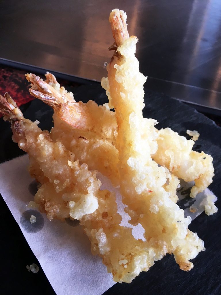 The grilled soft shell prawns were next. These were full of flavour and no peeling was required. We tried the tempura shrimp as well as the tempura veggies. The batter was crispy and light and we enjoyed both versions.