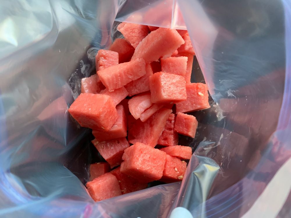 You can actually enjoy watermelon year round. Just cut up some pieces, and freeze them on a parchment-lined sheet. Once frozen, you can put the frozen cubes into a freezer bag and use them in smoothies or juices all year long.