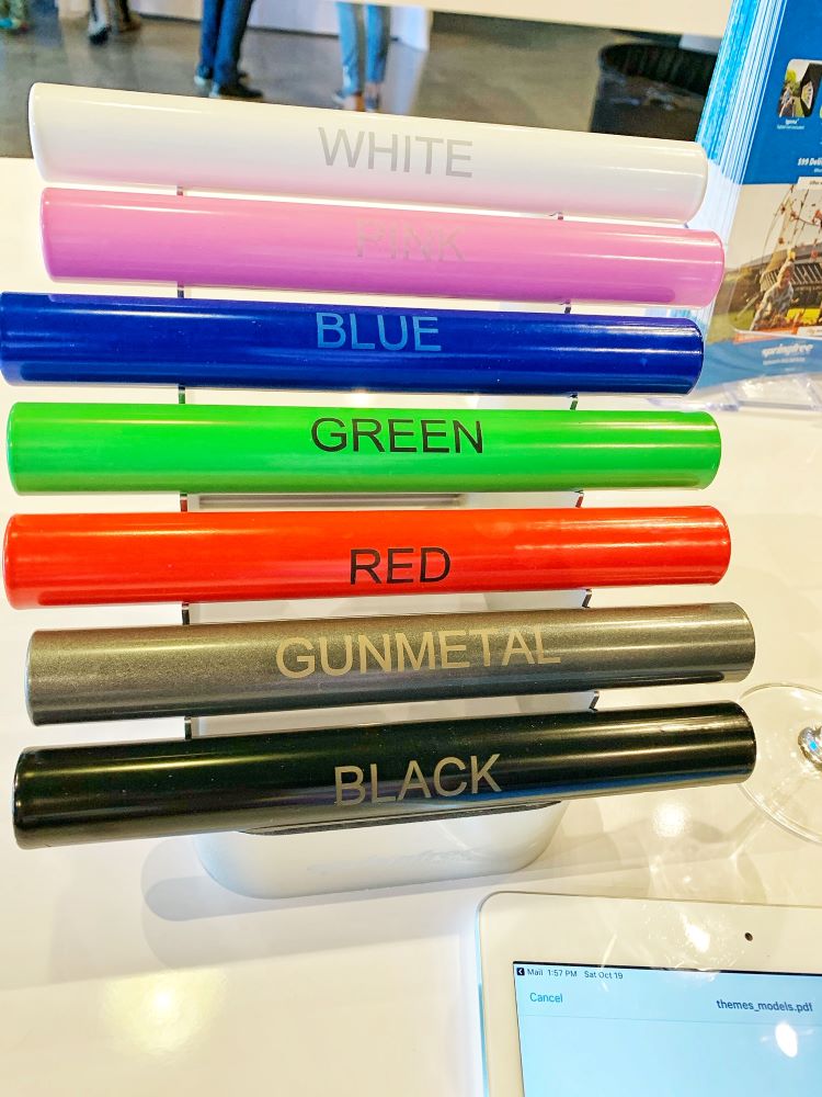 We then worked with the great staff at the store to decide on colour options. There are 7 options available: white, pink, blue, green, red, gunmetal and black. These colours can be mixed and matched on the legs, the frame, the mat rods and the net rods. So fun!