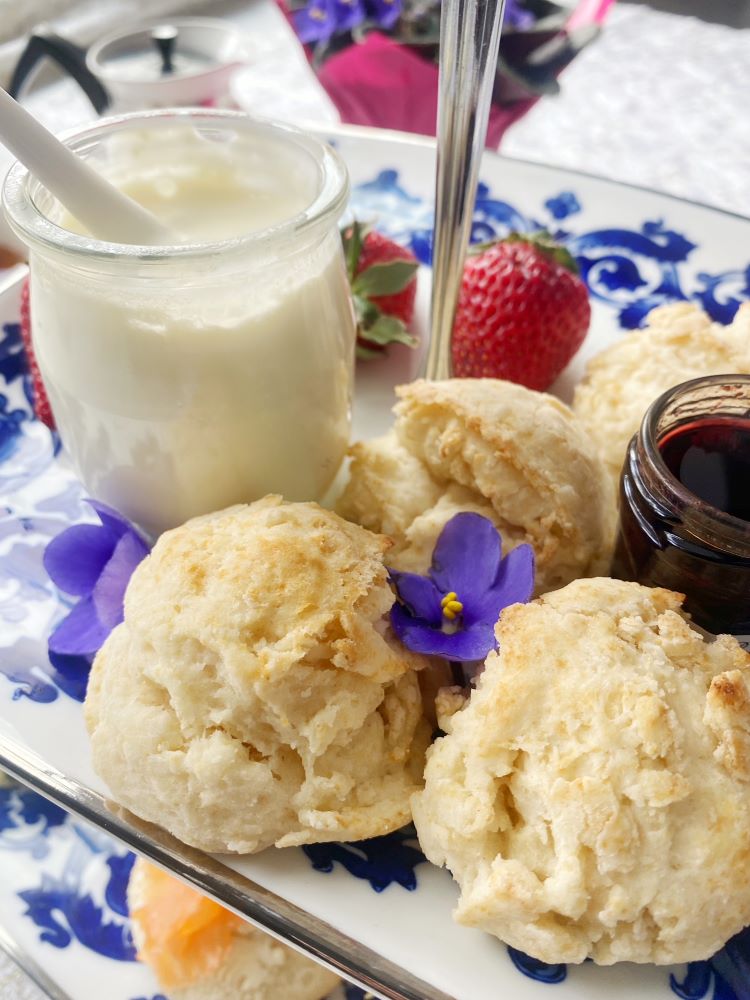 Scones are a must-have for any afternoon tea. The easiest ones to make are cream scones, which come together so easily and are dropped by the spoonful on a cookie sheet. You can serve this with butter, jam or even some thickened cream or malai.