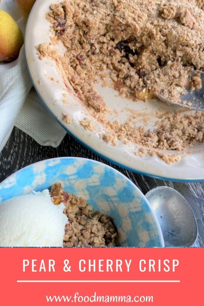 Sweet cherries with homegrown pears topped with a delicious oat and pecan topping make this pear and cherry crisp a comforting dessert.