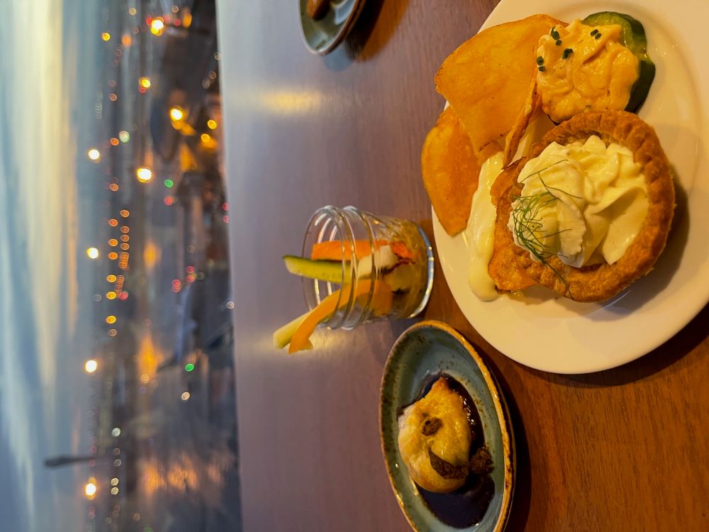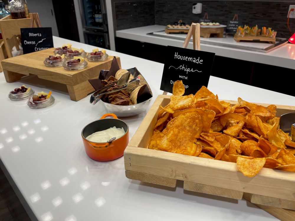 The lounge offers hors d’oeuvres every evening with fun little appetizers. They also offer dessert later in the evening along with bar service.