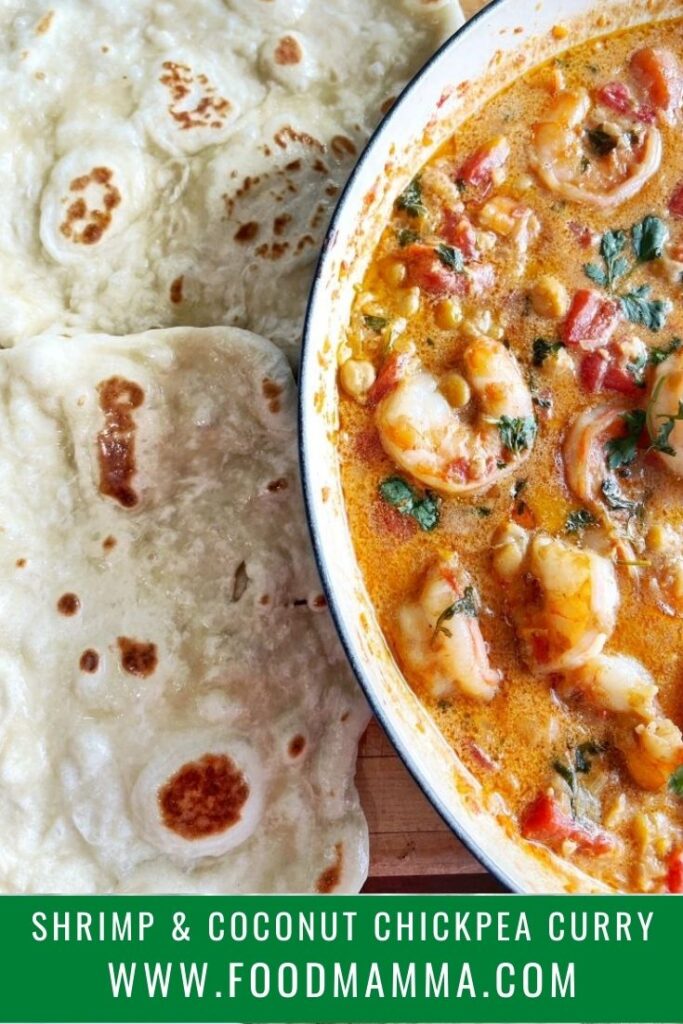 Meals like this shrimp and coconut chickpea curry are super simple and perfect for getting the kids in the kitchen. They are also tasty and filling. While this is great with rice, my preference is to have it with naan, which is easy to make at home.