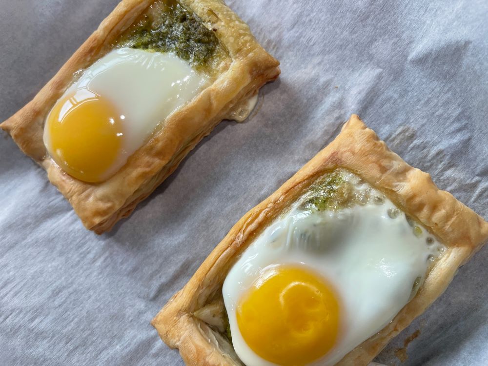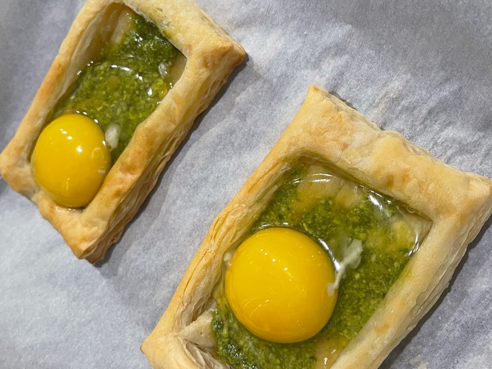 The flaky pastry, the flavourful pesto and the runny egg as you cut into the tart – it makes the perfect fun little snack.