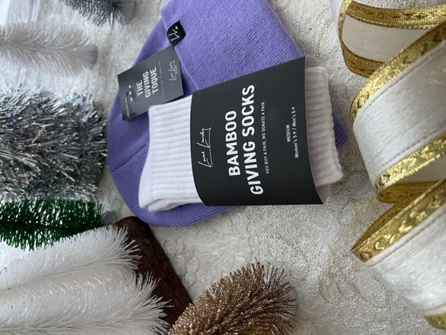 The Giving Toque comes in three colours and keeps you warm while looking great! The Giving Socks are breathable and keep away moisture, meaning no stinky feet!