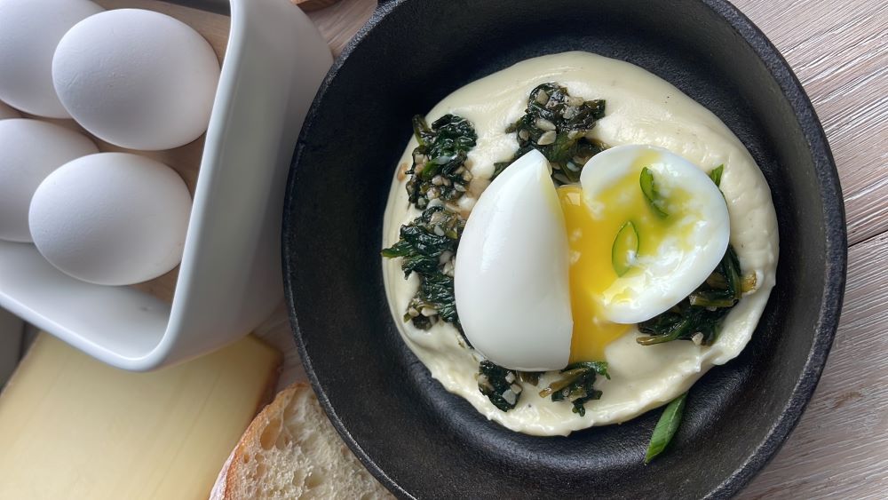 March is Nutrition Month, which perfectly aligns with the main ingredient in this meal – eggs! Eggs are so nutrient-dense and versatile, this dish of soft boiled eggs in Comte sauce is a great way to enjoy eggs as a main for lunch or dinner.