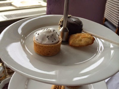 Tea service ended on a sweet note with a variety of desserts. Coffee macarons, french Madeleines, cake on a stick and little tarts were part of the finale. By the time I was done, I was stuffed and satisfied.