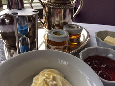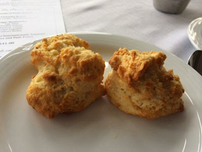 This was followed by a couple of warm scones served with clotted cream and strawberry jam. Scones and clotted cream – yum!