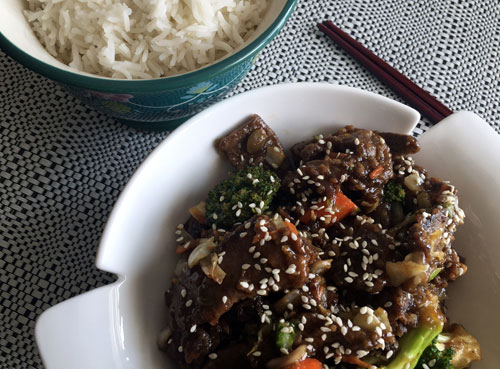 I dredged the beef in a flour mixture because I wanted the pieces to be a little crisp but you can totally skip that step. For the sauce, I sometimes just make a mixture of the sauces that are in the fridge, using up the last drops. This time, I made a slight variation to the sauce from the Mongolian Beef recipe, which was so delicious.