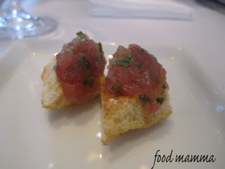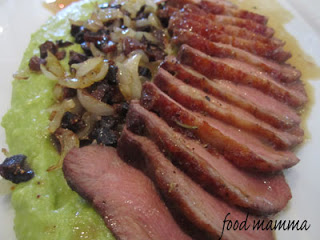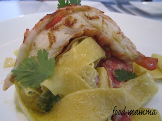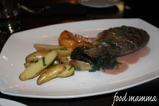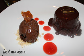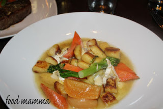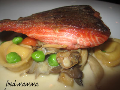 The other dish we had was the Salmon. This came with lemon ricotta tortellini, spring vegetables in a shellfish broth. The salmon was prepared perfectly and hubby was happy that it was paired with the pasta.