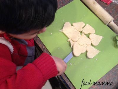 This year, Q wanted to make some cookies for his friends. I thought it would be a great time for us to try a new roll out shortbread recipe. I found one that had gotten some great reviews but for some reason it didn’t work for us! I ended up with a really dry and crumbly dough that just wouldn’t come together. I played around, added butter, then more butter…. Finally a splash of cream turned it into a pliable dough. Despite the additions to the recipe, the cookies tasted great – butter and cream makes everything good!