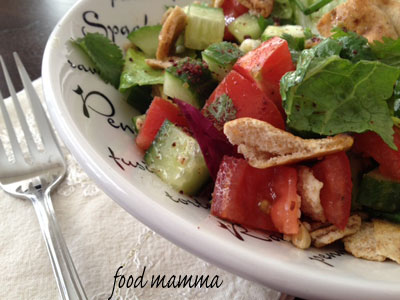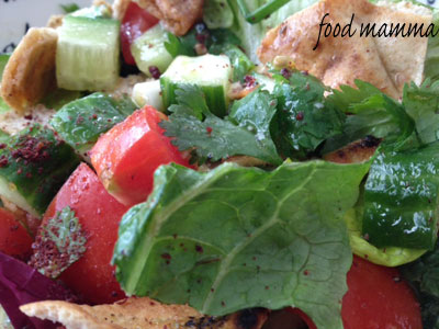 Sumac is best known for being a key ingredient in Fattoush, a middle eastern salad containing pieces of crispy pita bread. The salad is made with romaine lettuce, chunks of cucumber and tomatoes, herbs like mint and parsley and tossed together with the pita and the dressing. I used sumac in the dressing as well as sprinkled it on top. It adds a great sweet and sour taste to a refreshing salad.