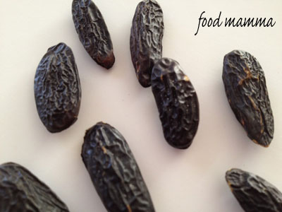 I first learned of tonka beans from my friend Cheryl, from Dining Room Empire. Cheryl uses tonka beans constantly – in scones, muffins, jam, chocolate cake, and even chocolate chip cookies. She also puts a whole bean in her home-canned peaches.