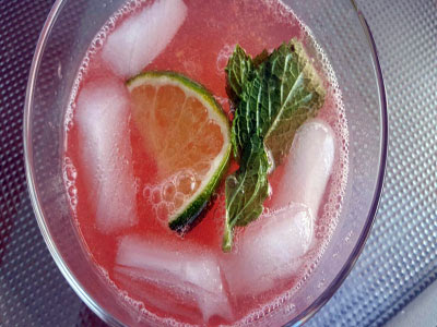 During the summer, we always have watermelon chilling in the fridge. I dumped that in the blender and made a beautiful ruby juice. It did need some tang and the concentrated limeade made the best addition. This was blended with enough ice to make the perfect slushy summer treat.